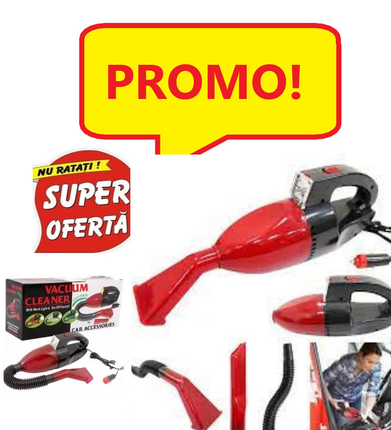 Aspirator auto 12V Vacuum Cleaner este un dispozitiv pentru facut curat in masina dumneavoastra, mizeria, praful, scamele si resturile alimentare vor disparea pe loc doar printr-o simpla apasare a butonului de pornire instalat de pe manerul aparatului de facut curat, masina dumneavoastra devenind astfel un spatiu curat. Cu un design modern, aspiratorul auto Vacuum poate fii tinut cu usurinta intr-o singura mana si dispune de-un motor ce dezvolta o putere de 1.500 PA, capabil sa absoarba chiar si particulele cele mai grele cum ar fii: nisip, pietris, praf, scame…etc… Cu acest accesoriu pentru confortul masinii dumneavoastra, aspiratorul auto 12V poate patrunde in locurile greu accesibile deoarece are in componenta 2 capete detasabile create special pentru locurile stramte din masina voastra, conectandu-se astfel la bricheta masini si dispunand de-un fir cu o lungime maxima de 2.8 m capabil sa acopere tot perimetrul masinii pentru curatare. Specificatii aspirator auto 12V Vacuum: – simplu si usor de folosit – portabil cu un design modern – alimentare directa la bricheta masinii 12V – putere aspirare: 1500 PA – zgomot produs: 50 db. Culorile sunt in limita stocului disponibil. Nu pot fi selectate. Mentiune: Vanzatorul face eforturi permanente pentru a pastra acuratetea informatiilor din acesta pagina. Rareori acestea pot contine inadvertente: Imaginile folosite si textele de pe SITE au caracter informativ și pot varia sau diferi ocazional față de caracteristicile produselor prezentate. Toate promotiile prezente in site sunt valabile in limita stocului.