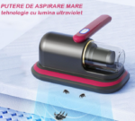 Curățare Eficientă: Lumina UV-C are proprietăți germicide cunoscute, care pot contribui la eliminarea alergenilor și bacteriilor, inclusiv a acarienilor. Funcția de aspirare apoi îndepărtează murdăria, asigurând o curățare completă.