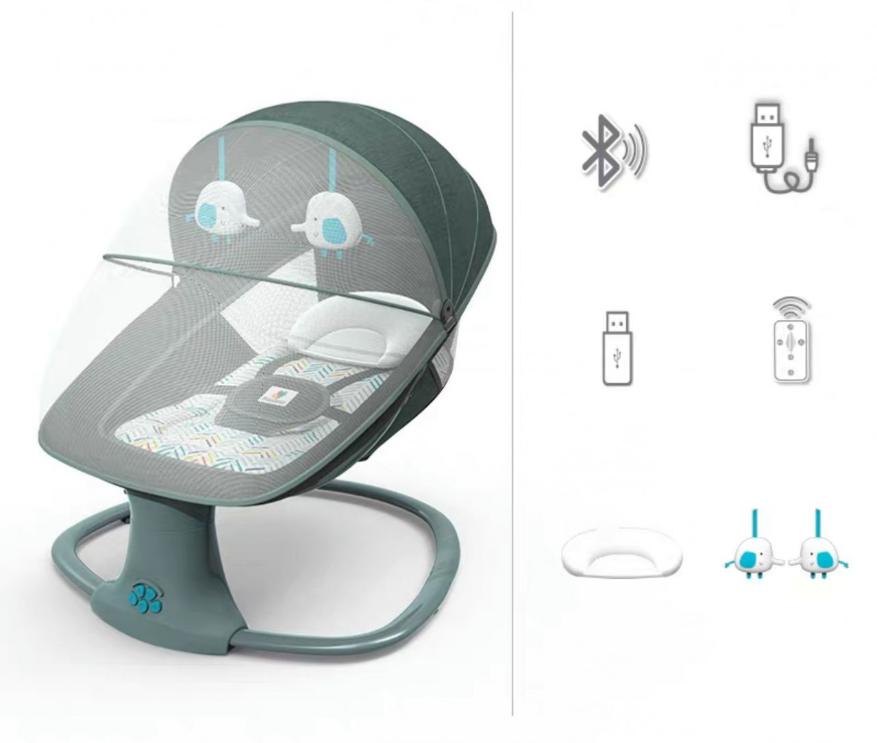 Balansoar 8105, Verde Prafuit, Balansoar Electric Bebe, 3in1, balansare automata, bluetooth, bara de activitati, usb, melodii incorporate, 03800BBY
