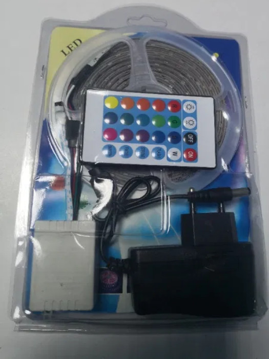 Banda LED Multicolor RGB 2835 cu Telecomanda, 5 metri lungime, 12 V, cu Transformator