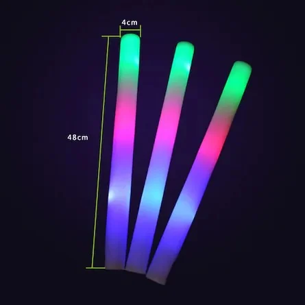 Bastoanele din spumă aprinse sunt o alegere populară ca recuzită de petrecere, favoruri de ziua de naștere pentru copii și favoruri de nuntă pentru oaspeți. Ele creează o ambianță uimitoare si sunt o multime de distractii ca săbii ușoare pentru copii, sau jucării strălucitoare rave, ele aduc tone de bucurie pentru copilul din noi toți. Bete de spumă LED pentru concerte, cluburi, viața de noapte, raves, petreceri, petreceri de burlaci / burlăcițe, ddings, și orice alt eveniment de noapte Betele din spumă LED sunt folosite în multe cluburi din întreaga lume. Lungimea unei baghete este de 47cm si diametrul de 4cm.