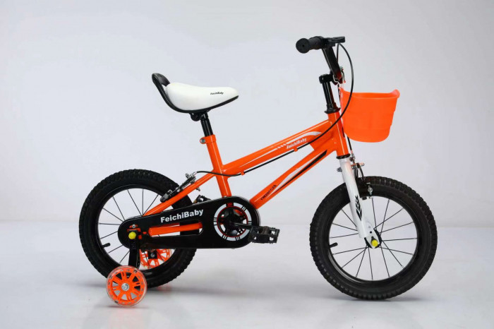 Bicicleta Copii FeichiBaby, 12″, Portocaliu, cu Roti Ajutatoare si cosulet, varsta 2-4 ani, 04790BR