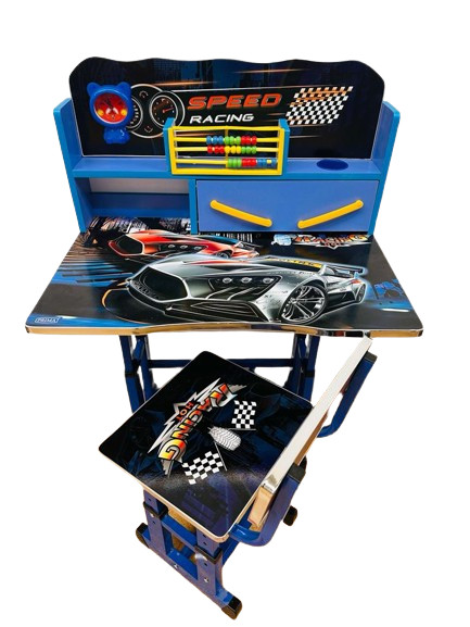 Birou cu Scaun Pentru Copii, Model F13, Imprimeu Racing, cu Polita si Sertar, Numaratoare si Ceas, 01350CLT