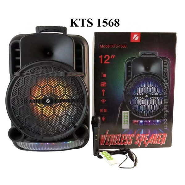 Boxa portabila tip troller KTS 1568, Wireless, Bluetooth, 12′, Lumini LED, Super Bass, AUX, Card, USB Stick, Radio FM