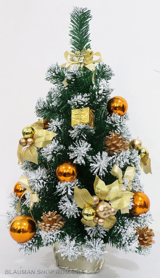 Brad artificial decorativ de masa. 60 cm cu decoratiuni aurii -BLAU