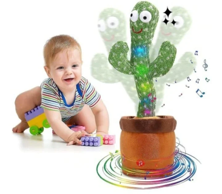 Jucaria inregistreaza si repeta tot ce spune copilul. Pe langa aspectul simpatic si amuzant, cactusul fiind in ghiveci, confectionat dintr-un plus placut la atingere, acesta poate dansa, atragandu-va si pe dumnevoastra intr-o atmosfera plina de voie buna, poate canta diferite cantece pe care, cu siguranta, le va invata si cel mic, iar prin functia de vorbire, ajuta la dezvoltarea vocabularului copilului dumneavoastra. De altfel, cactusul dansator, imita ceea ce spui ceea ce va aduce multe zambete in casa dumneavoastra