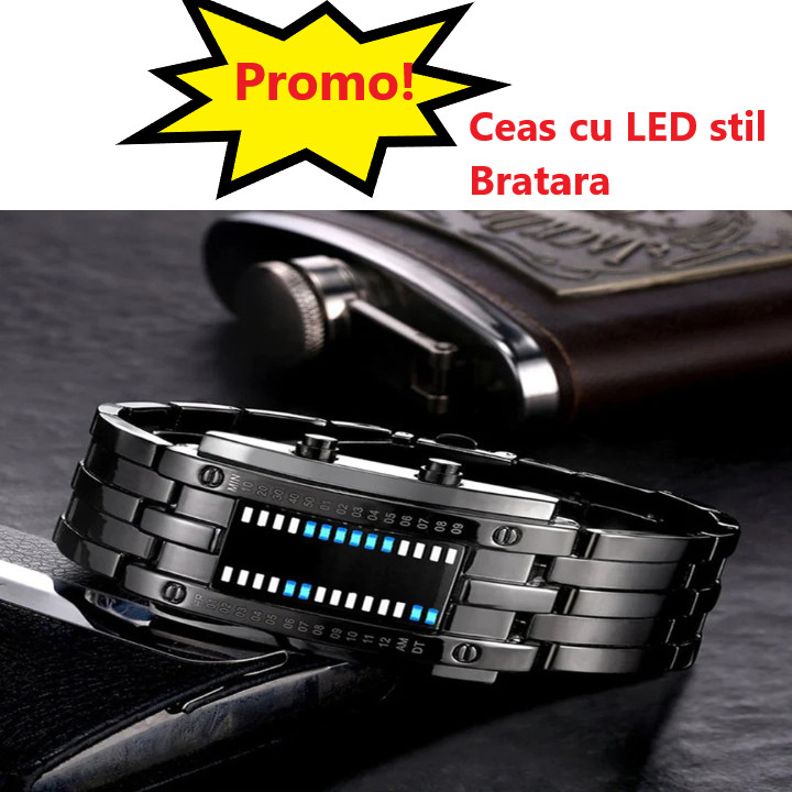 Timpul este cel mai pretios si nu iti doresti sa pierzi niciun moment! ⌚ Unul dintre aspectele sale remarcabile este ecranul LED, care oferă o modalitate simplă și clară de a verifica ora. Cu un design minimalist, acesta se integrează perfect în brățara din oțel inoxidabil, oferindu-vă un aspect modern și atrăgător. De ce sa alegi ceasul cu LED stil bratara? ✅ Design modern si stilat ✅ Afisaj clar si usor de citit ✅ Pret foarte accesibil Ceasul dispune de afisare tip digital cu afisarea timpului si a datei! ⌚ Datorită brățării ajustabile, ceasul se potrivește confortabil pe încheietura mâinii, asigurându-vă că este întotdeauna la îndemână. Cu o simplă atingere, puteți verifica ora și adăuga un strop de eleganță fiecărei zile. Functii: ✔️ Cronometru ✔️ Alarma ✔️ Clendar ✔️ Afisaj 12 / 24 h ✔️ Afisare ora ✔️ Afisare minut ✔️ Lumina fundal Specificatii: ✔️ Lungime: 23 cm ✔️ Latime bratara: 30 mm ✔️ Diametru carcasa: 30 mm ✔️ Grosime carcasa: 14 mm ✔️ Greutate: 100 g ✔️ Display LED ✔️ Tip afisaj: Digital ✔️ Material carcasa: Aliaj ✔️ Material bratara: Carcasa ✔️ Tip inchizatoare: Pliabila ✔️ Rezistent la socuri ✔️ Rezistenta la apa: 3 ATM ✔️ Dimensiuni carcasa: 30 x 55 mm Continut pachet: 1x Ceas cu LED stil Bratara, din otel inoxidabil Mentiune: Vanzatorul face eforturi permanente pentru a pastra acuratetea informatiilor din acesta pagina. Rareori acestea pot contine inadvertente: Imaginile folosite si textele de pe SITE au caracter informativ și pot varia sau diferi ocazional față de caracteristicile produselor prezentate. Toate promotiile prezente in site sunt valabile in limita stocului. Toate fotografiile prezentate au caracter informativ si pot sa nu fie actualizate la infatisarea actuala a produselor. . Caracteristicile descrise sunt cu titlu informativ, putand fi schimbate fara instiintare prealabila si nu constituie obligativitate contractuala.