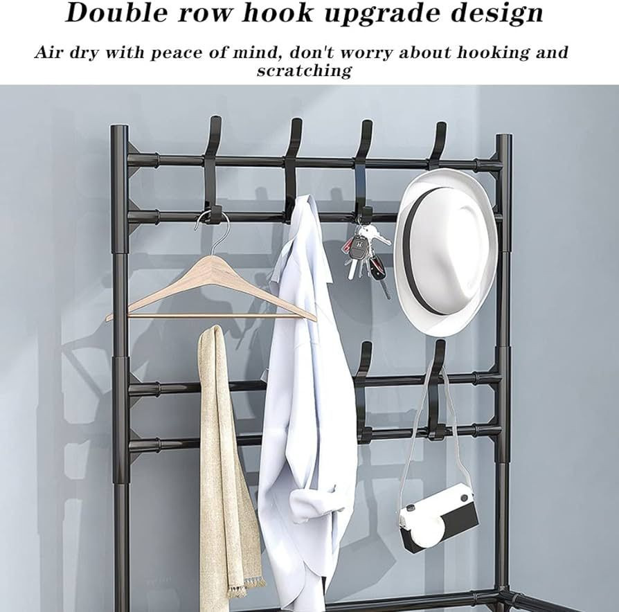 Cuier cu pantofar, Metalic, cu 4 rafturi, Agatatori Negru