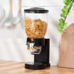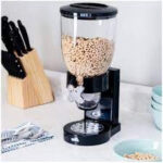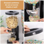 Dispenserul pentru cereale ideal pentru stocarea si dozarea cerealelor, fulgi de ovaz, bomboane, nuci, orez, fasole, etc… Cu ajutorul acestui dispenser sansele sa varsati cerealele sunt reduse. Cu un design inovator dispenserul pastreaza cerealele proaspete pentru un timp indelungat, compartimentul acestuia avand inchidere etansa. Materialul din care este realizat acest produs este plastic de cea mai buna calitate fiind usor de curatat. Caracteristici: -dispenseaza aproximativ 30g de cereale printr-o singura rotire a axului. -recipientul retine aproximativ 600g de hrana uscata. -este potrivit pentru: cereale, fulgi de grau sau porumb, bomboane, nuci, alune, fasole, orez. -copii se pot servi fara sa imprastie cereale. -plastic de cea mai buna calitate -dimensiuni: H – 34 cm; L 20 cm Mentiune: Vanzatorul face eforturi permanente pentru a pastra acuratetea informatiilor din acesta pagina. Rareori acestea pot contine inadvertente: Imaginile folosite si textele de pe SITE au caracter informativ și pot varia sau diferi ocazional față de caracteristicile produselor prezentate. Toate promotiile prezente in site sunt valabile in limita stocului.