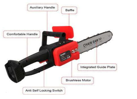 Drujba Motofierastrau cu lant 12 inch, cu 2Lanturi, 2Lame, 1 Acumulator, Lithium 1200 W, 4200rpm, 305mm