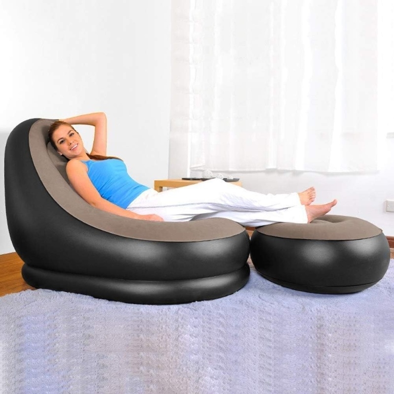 Fotoliu gonflabil cu suport pentru picioare, invelis catifelat