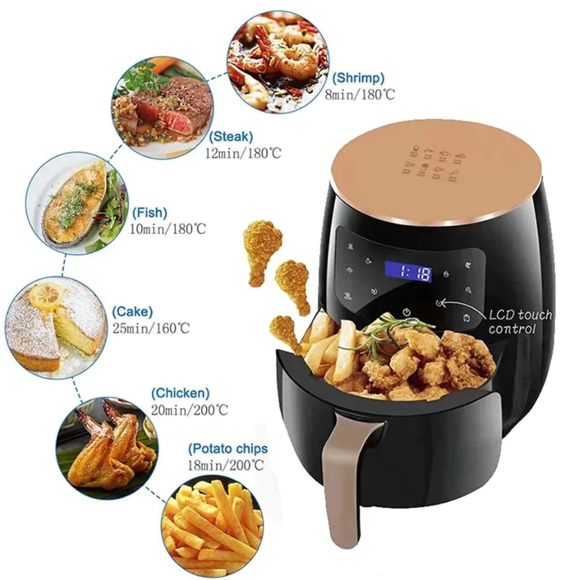 Friteuza cu aer cald AirFryer 2400W, capacitate 6L si afisaj digital, LCD Touch control