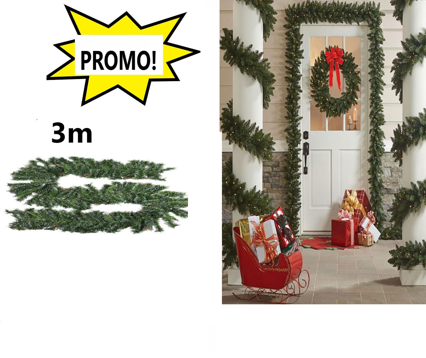 Oferta 2 Bucati x Ghirlanda de brad artificial verde, aspect natural 300 cm