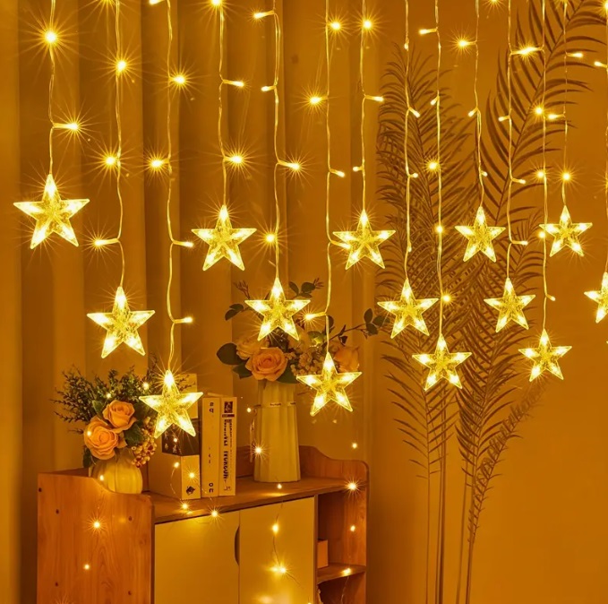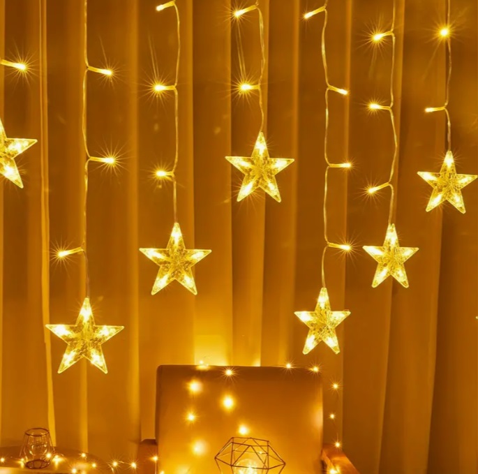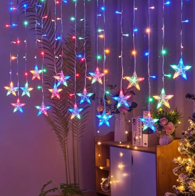 Instalatie Craciun – perdea luminoasa ploaie 12 stele
