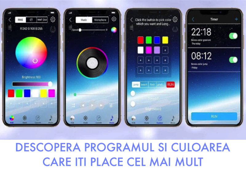 In plus, poti conecta mai multe instalatii prin acelasi telefon, controlandu-le pe toate simultan sau pe fiecare in parte pentru a realiza cel mai spectaculos joc de lumini!!!