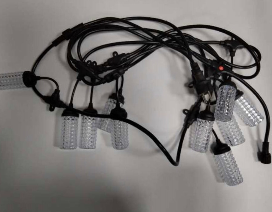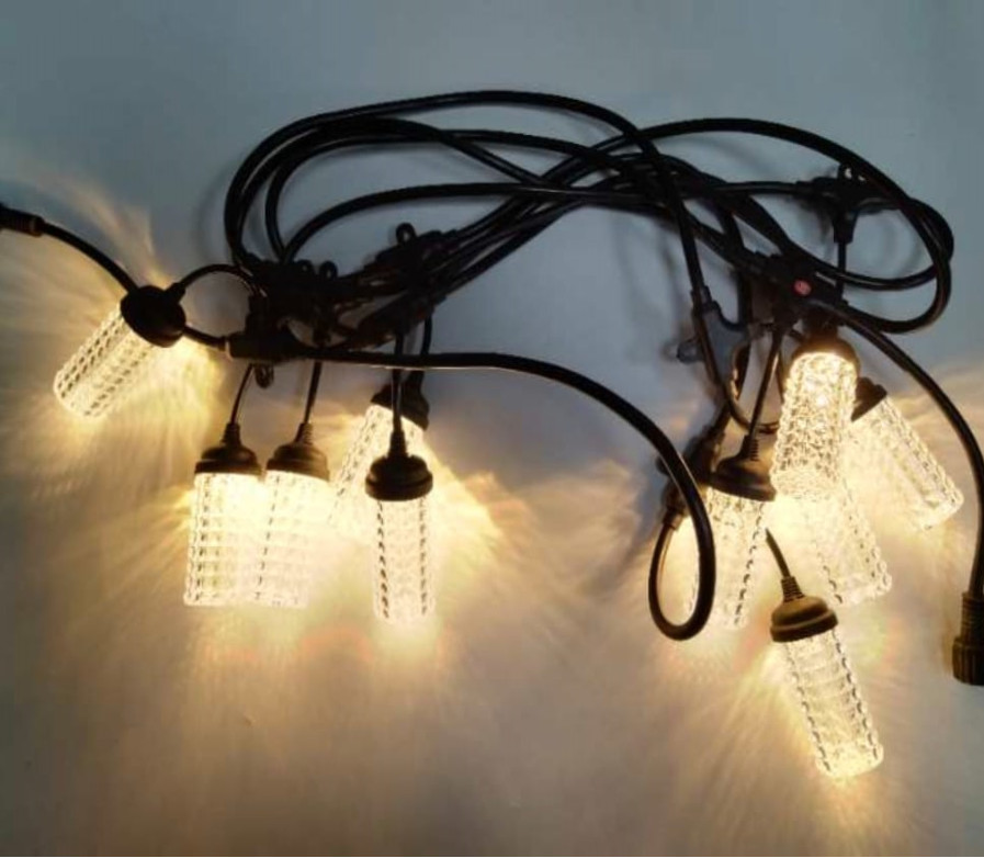 Instalatie, Ghirlanda Luminoasa, 10M cu 10 Becuri Cilindrice, Interconectabile, Cablu Negru, Lumina Calda 0750