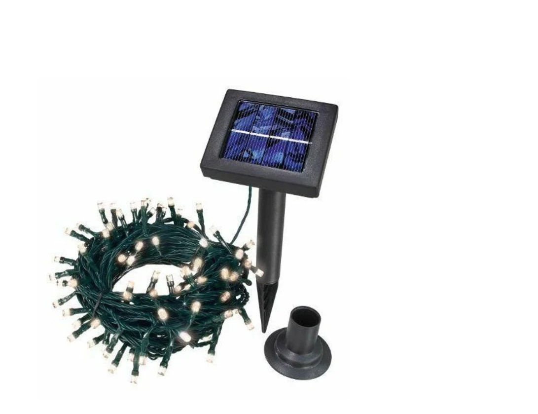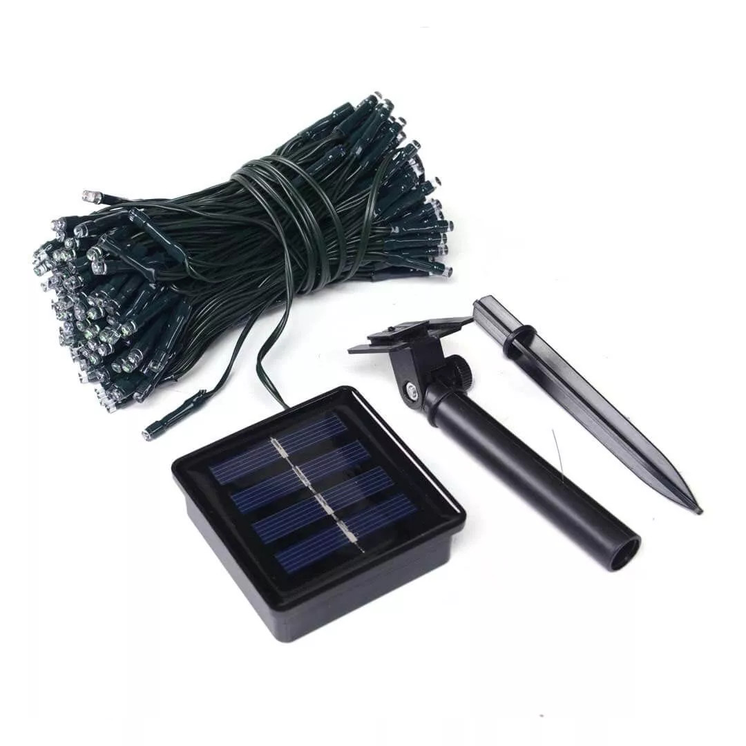Aceasta instalatie se monteaza in exteriorul casei, dispunand de un mic panou solar care permite incarcarea pe timpul zilei si de un sensor de lumina, ce o face sa functioneze pe timpul noptii. Este ideala pentru orice anotimp si orice fel de eveniment: Craciun, Anul Nou, aniversari, nunti, botezuri, petreceri. Ghirlanda luminoasa solara este recomandata utilizarii in primul rand in spatii exterioare, dar poate fi folosita si in incaperi luminoase si insorite. Dispozitivul se alimenteaza cu energia provenita de la Soare, astfel nu-i necesara conexiunea la 220V. Acumulatorul integrat se incarca complet in timpul zilei in decurs de 6-8 ore si poate functiona pana in 4-5 ore (la prima utilizare se recomanda sa fie incarcat timp de 12 ore). Ideal pentru decorare: copaci, tufisuri, garduri, acoperisuri precum si pentru ferestre si brazi de Craciun. Este perfect pentru iluminatul cinei in gradina, ornamentarea la diverse evenimente. Beculetele se aprind cand se innopteaza respectiv decupleaza automat daca lumina ambianta este suficient de puternica (≥15lx). Pentru o functionare perfecta panoul solar trebuie asezat intr-un loc insorit si trebuie evitata murdarirea acestuia de praf, noroi sau zapada. Aceasta instalatie este prevazuta cu 100 LED-uri cu lumina multicolora, cu o putere de 0.2W, panou solar 2v 100mA (siliciu monocristal) si 1 baterie NI-MH 600 mAh. Cablul instalatiei are lungimea de 15 metri, iar cablul de alimentare este de culoare verde. In perioada sarbatorilor de iarna instalatia are un rol deosebit de important pentru iluminarea locuintei, intrucat realizeaza un mediu ambiental primitor si calduros. Astfel, culoarea LED-urilor si numarul total de surse de iluminat sunt caracteristici care influenteaza aspectul final al acesteia. Instalatia are gradul de protectie IP44, se utilizeaza la exterior si are o durata de functionare de 6 – 8 ore. Aceasta nu necesita alimentare de la reteaua electrica, intrucat functioneaza doar cu ajutorul energiei solare si al acumulatorului incorporat. Acumulatorul este incarcat de elementul solar in timpul zilei, iar LED-urile lumineaza pe timp de noapte. Amplasand panoul la exterior, in locuri insorite, aceasta poate lumina pentru o perioada mai indelungata. Pozitionarea sa in locatii intunecoase poate influenta incarcarea acumulatorului si poate scurta durata de functionare a instalatiei pe timpul noptii. Temperatura de functionare: intre -20°C si + 60°C. * Mentiune: Vanzatorul face eforturi permanente pentru a pastra acuratetea informatiilor din acesta pagina. Rareori acestea pot contine inadvertente: fotografia are caracter informativ si poate contine accesorii neincluse in pachetele standard, unele specificatii sau pretul, pot fi modificate de catre producator fara preaviz sau pot contine erori de operare. Toate promotiile prezente in site sunt valabile in limita stocului. *