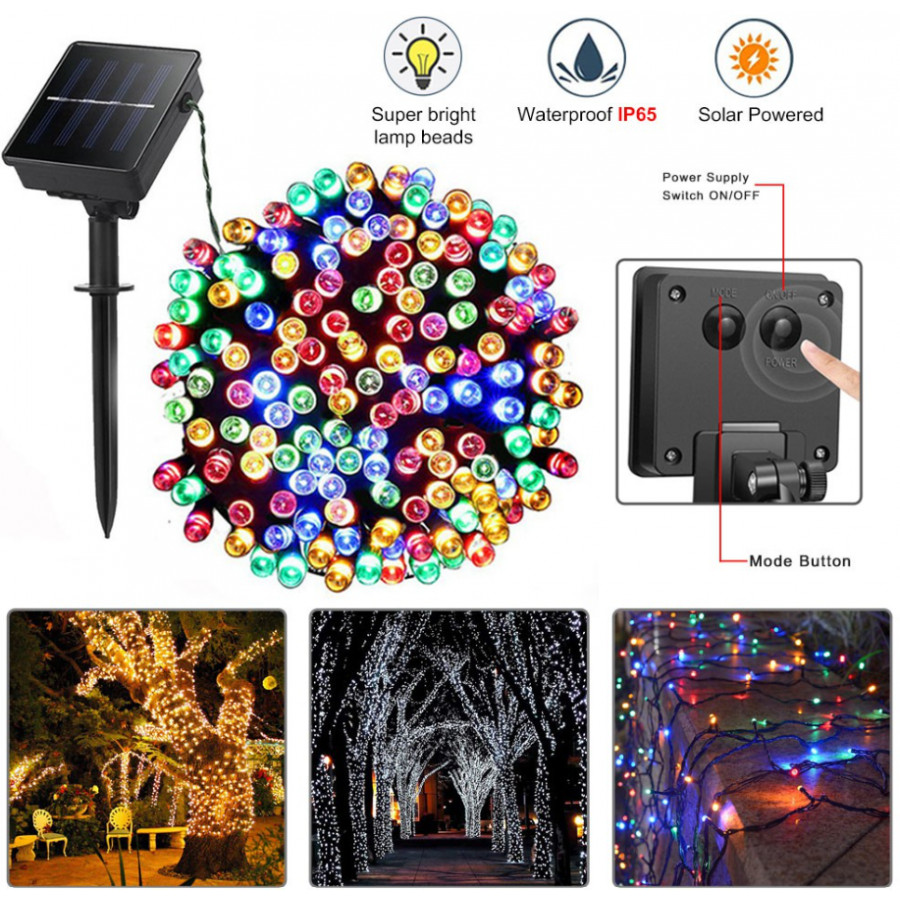 Instalatie Solara SL200C, Led cu 200 Leduri Multicolore, 22m, Diferite Jocuri de Lumini