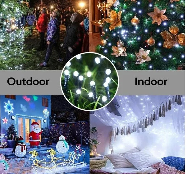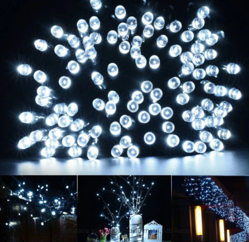 Instalatie Solara SL100W, Led cu 100 Leduri Alb Rece, 12m, Diferite Jocuri de Lumini