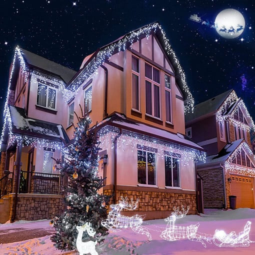 Instalatie pentru Craciun, foarte frumoasa, stil perdea de franjuri inegali cu led. Rezistenta la inghet, efect luminos deosebit, cu 8 jocuri diferite de lumini. Perdea luminoasa de led-uri in forma de turturi, cu franjuri inegale, ce dau un aspect aparte, natural si plin de magie. Este foarte usor de instalat si de asezat pe casa, pe gard sau in curte, oriunde doriti. Led-urile sunt becuri care consuma foarte putin si sunt recunoscute pentru rezistenta si durata lunga de viata. Firele perdelei de led-uri se comporta foarte bine la inghet si umezeala, astfel ca le puteti folosi mai multi ani la rand. Efectele luminoase sunt afisate in 8 jocuri de lumini diferite: waves, flash, steady on, slow glow, slow fade, chasing, twinkle sau seqvential. Mentiune: Vanzatorul face eforturi permanente pentru a pastra acuratetea informatiilor din acesta pagina. Rareori acestea pot contine inadvertente: Imaginile folosite si textele de pe SITE au caracter informativ și pot varia sau diferi ocazional față de caracteristicile produselor prezentate. Toate promotiile prezente in site sunt valabile in limita stocului.