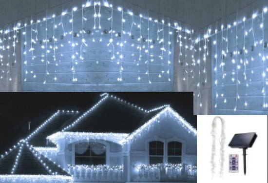 Instalatie Turturi Solara „SL03W QX-144-F-1W-270L-N”, 300 Leduri, Alb Rece, 12m, tip Franjuri