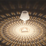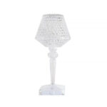 Lampa de birou pe LED RGB 16, Flippy, dimmer tactil, 3 nivele de intensitate, incarcare USB, 3W, Cristal Acrilic, cu telecomanda, forma pahar, transparent