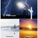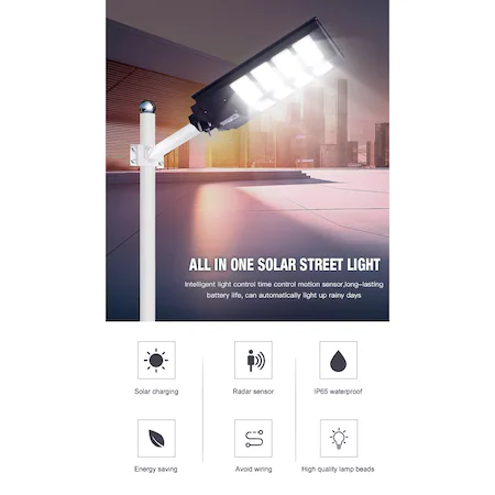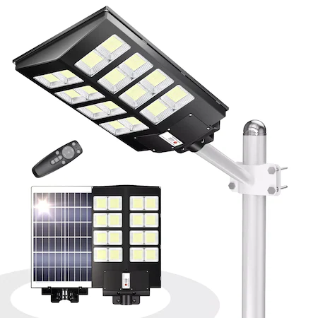 Lampa solara de perete sau stradala 640 LED-uri, rezistenta la apa potrivita pentru zilele ploioase ori zilele de iarna cu standardul IP65.
