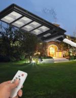 Pachetul include: Lampa solara cu baterie incorporata, panou fotovoltaic, telecomanda