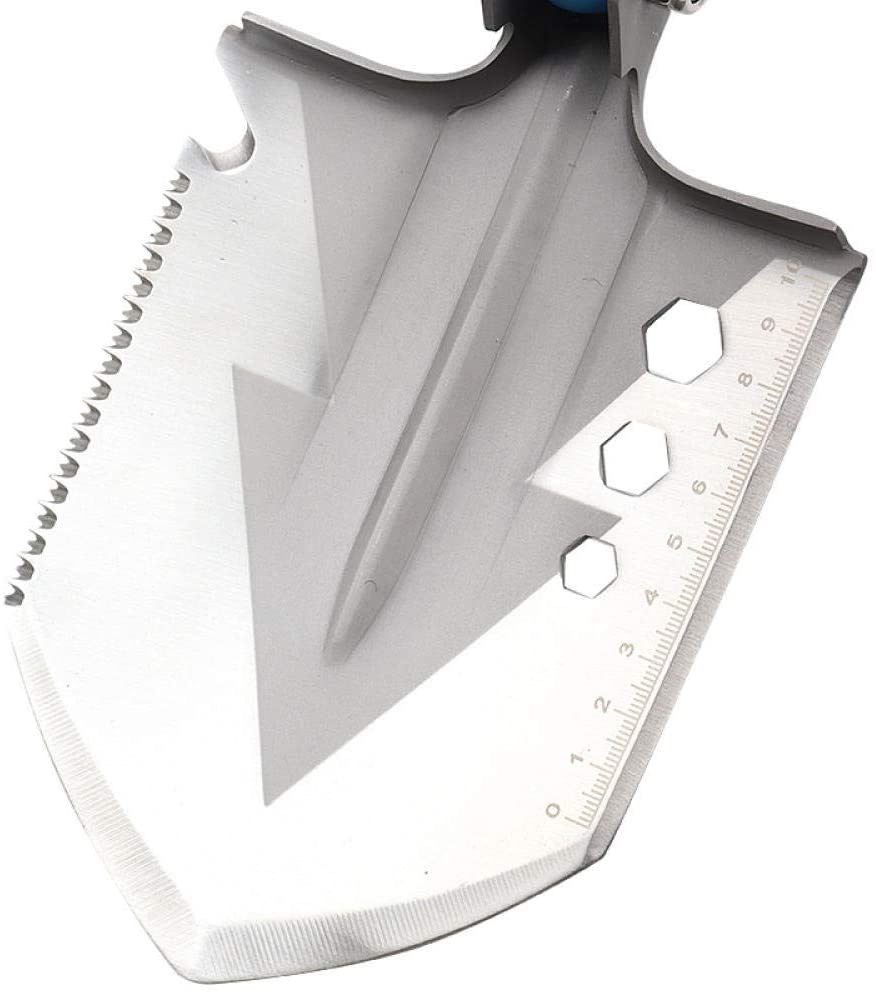Placa de lopata cu o grosime de 0,25 cm, suficient de rezistenta pentru cele mai dure conditii; Maner anti-alunecare cu granulatie adanca Utilizare: Sapat, ferastrau, taiat, cules, scoatere, ciocane, deschidere sticle, lopata. Material din otel de inalta calitate, poate decoji piei de animale, calcina fosfor de peste, taia franghia.
