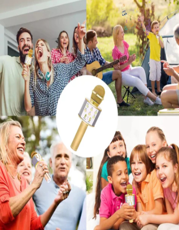 Microfon Karaoke Pentru Copii, Gold WS-858, wireless, acumulator 1800mah, iOS si Android 0170 SHB38