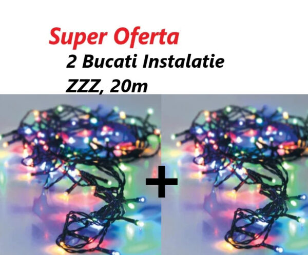 Oferta 2 Bucati x Instalatie De Craciun Multicolora, ZZZ, 20m, Leduri Multicolore