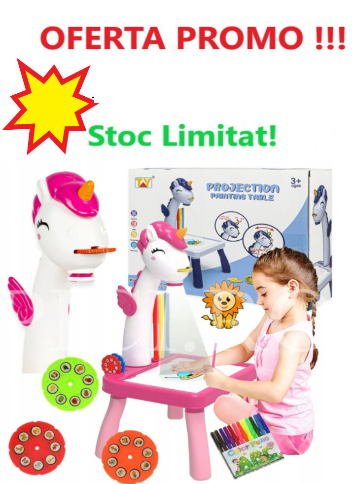 Oferta 2 bucati x Masuta de desenat UNICORN Roza cu proiector, diapozitive si holograme