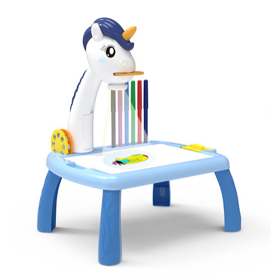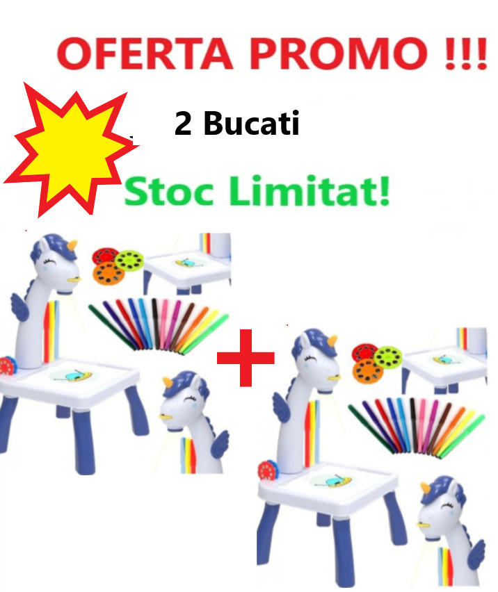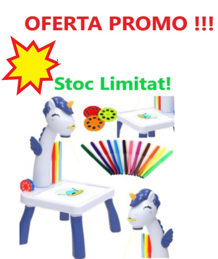 Oferta 2 bucati x Masuta de desenat UNICORN Albastra cu proiector, diapozitive si holograme