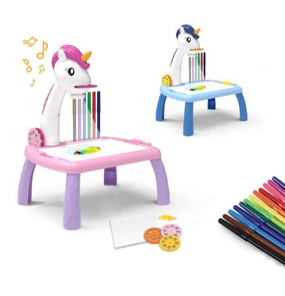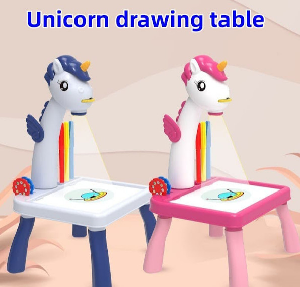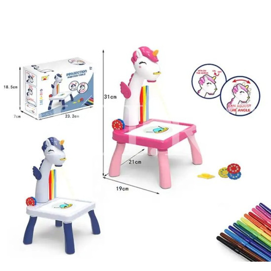 Oferta 2 bucati x Masuta de desenat UNICORN Albastra si Roza cu proiector, diapozitive si holograme 0400