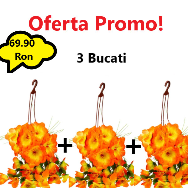 Oferta 3 Bucati x Ghiveci Suspendat cu Flori Portocalii Artificiale