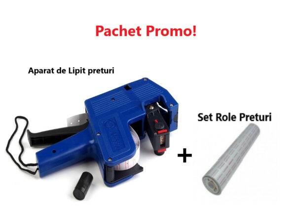 Oferta – Aparat pentru lipit preturi, 5 caractere + Set role aparat de lipit preturi, 22 x 12 cm, 10 bucati