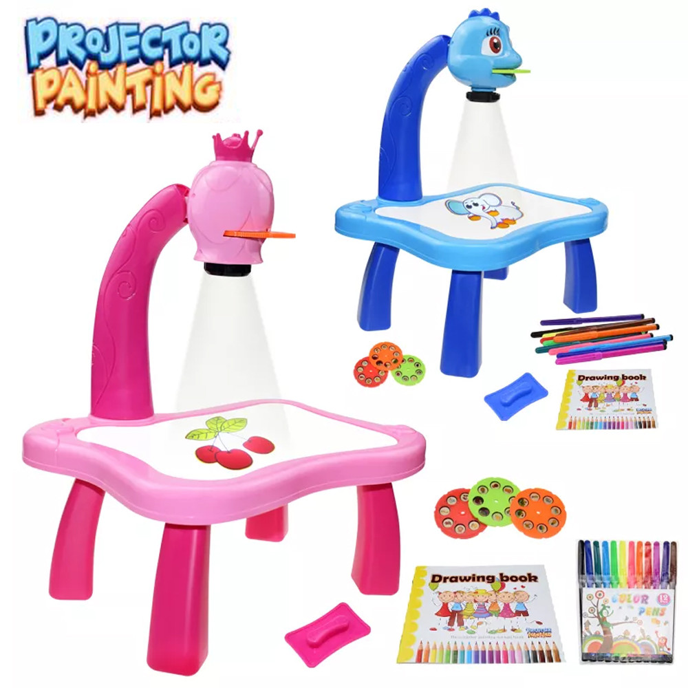Oferta Dubla Pentru Baiat si Fata- 2 Bucati x Masuta Pentru Desenat cu Proiector Holografic si Diapozitive Incluse 1Bucata Roz, 1Bucata Albastra