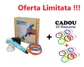 Pachet cu Stilou pentru Desenat In Spatiu 3D, 3DPEN-2 + Cadou 20 Filamente Colorate, Pentru Incepatori, Cu Afisaj Si Filamente Multicolor