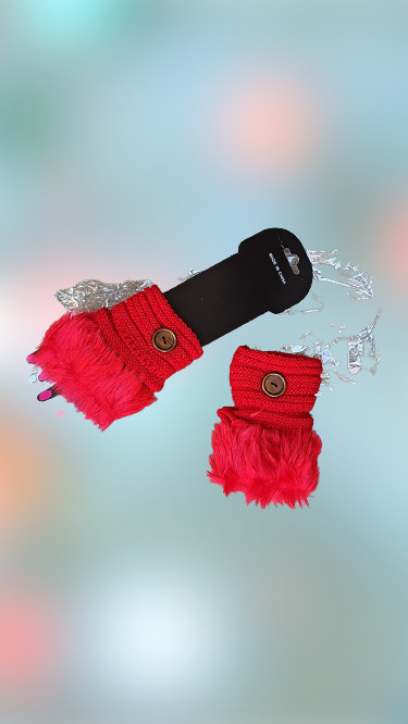 Pachet Promo – Colanti Legging Slim Fit cu Banda Ridicata in Jurul Taliei + Manusi Pentru Incheietura cu Blanita, Tricotate, Rosii
