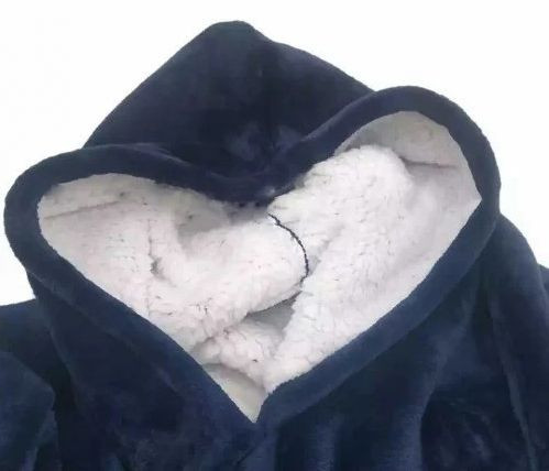 Patura cu maneci Bleumarin, stil hanorac cu gluga si buzunar Huggle Hoodie, 0350 SHB38