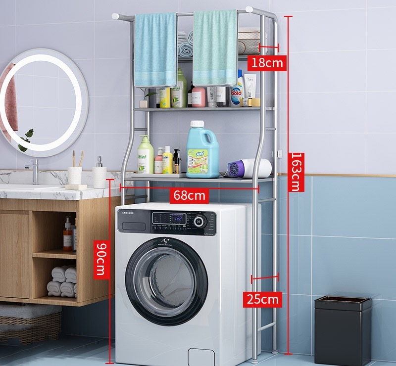 Raftul de depozitare cu 3 polite, de amplasat deasupra masinii de spalat, va fi cu siguranta solutia perfecta pentru a crea mai multe spatii suplimentare de depozitare intr-o baie supraaglomerata sau in spalatorie.