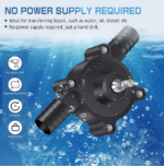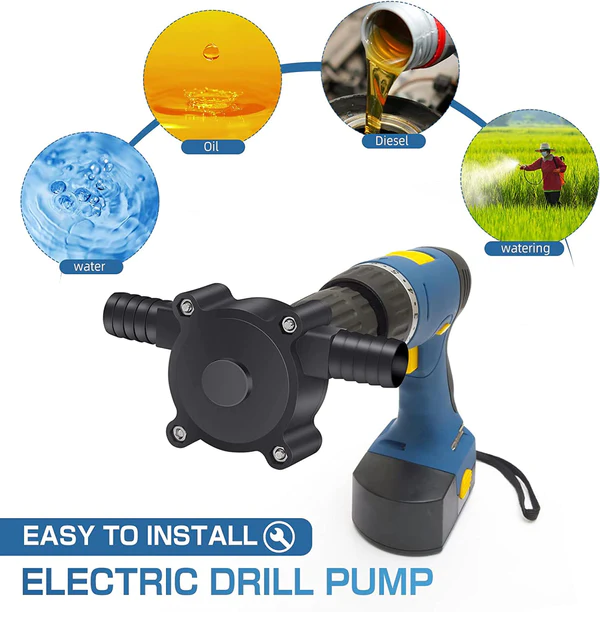 Debit mare de apa, performanta stabila si eficienta ridicata, aceasta pompa portabila nu necesita baterie, trebuie doar sa fie conectata la o bormasina.