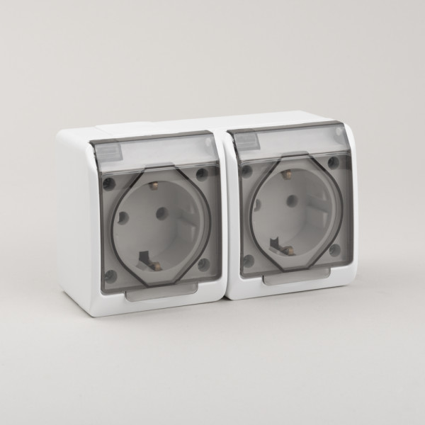 Priza Dubla Schuko cu impamantare, aplicat, interior/exterior, IP54, alb 220-240