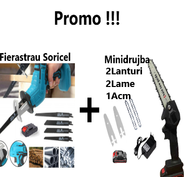 Promo!!! Fierăstrău Tip Sabie, Soricel Fără Fir Pentru Taiat si Toaletat Gradina, cu 1 Acumulator si 4 Lame Incluse + Mini drujba 6 inch cu 2 Lanturi, 2 Lama, 1 Acumulator