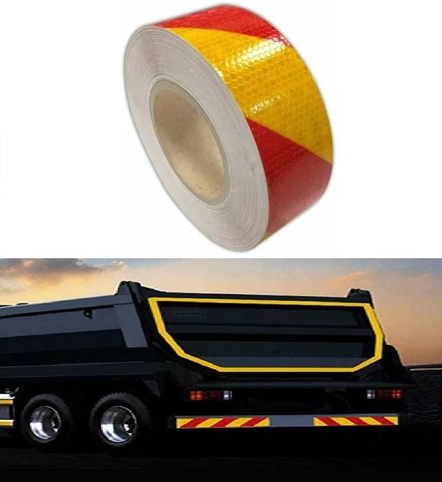 pecificatii: -Culoare: rosu cu galben -Banda reflectorizanta continua pentru conturul camioanelor si semiremorcilor -Imbunatateste vizibilitatea si scade riscul reducerii accidentelor -Lungime 25 m -Latime aprox. 5 cm *Imaginile, culorile si caracteristicile descrise au caracter informativ și pot contine mici inadvertente sau diferi ocazional fața de produsele prezentate pe site.