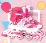 Role si patine cu rotile copii R06, roti silicon cu lumini, masuri reglabile 30-37. Copilul tau vrea sa invete sa mearga cu rolele? Acesta este un produs special pentru incepatori. Rolele sunt stabile si reglabile pe 2 marimi: piciorul creste, la fel si rolele! Caracteristici: – Marime ajustabila – Carcasa semi-moale, usoara si durabila, confectionata din policarbonat – Inchidere in 2 sisteme (Clape si Velcro) – Spuma dubla – Captuseala din spuma dubla – Frana din material foarte rezistent – Frana este situata pe papucul drept si poate fi montata si pe cel stang – Kitul include chei pentru asamblarea rotilor in 2 moduri diferite Se recomanda purtarea unui echipament de siguranta pentru a fi protejati in caz de cadere. Roti de 6.3 mm, din cauciuc siliconat. Rotile pot fi montate 4 in linie sau 2 roti in fata si 2 roti in spate.In functie de cum sunt asezate rotile, unele se vor uza mai repede decat celelalte, de aceea este indicat sa le schimbati intre ele pentru ca uzura sa fie uniforma. Frana se poate monta pe oricare picior se doreste, pe spate. Masuri disponibile reglabile: S: 31- 34 M: 35 – 38 Culoarea poate diferi putin fata de cea din fotografii. Mentiune: Vanzatorul face eforturi permanente pentru a pastra acuratetea informatiilor din acesta pagina. Rareori acestea pot contine inadvertente: Imaginile folosite si textele de pe SITE au caracter informativ și pot varia sau diferi ocazional față de caracteristicile produselor prezentate. Toate promotiile prezente in site sunt valabile in limita stocului.