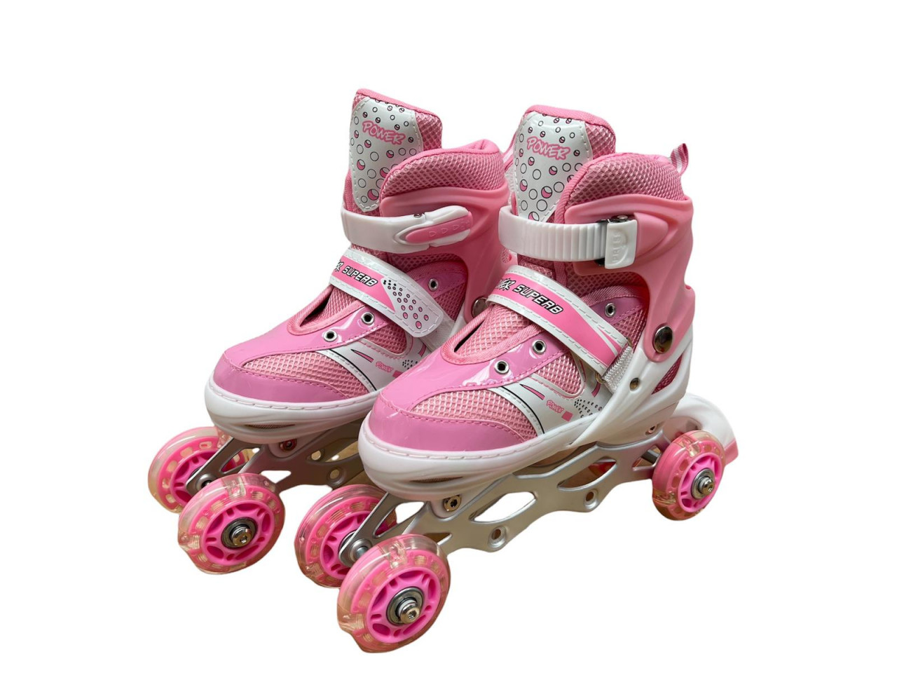 Role si patine cu rotile copii R06, roti silicon cu lumini, marimi reglabile, roz/alb (Marime: 31-34) 01000