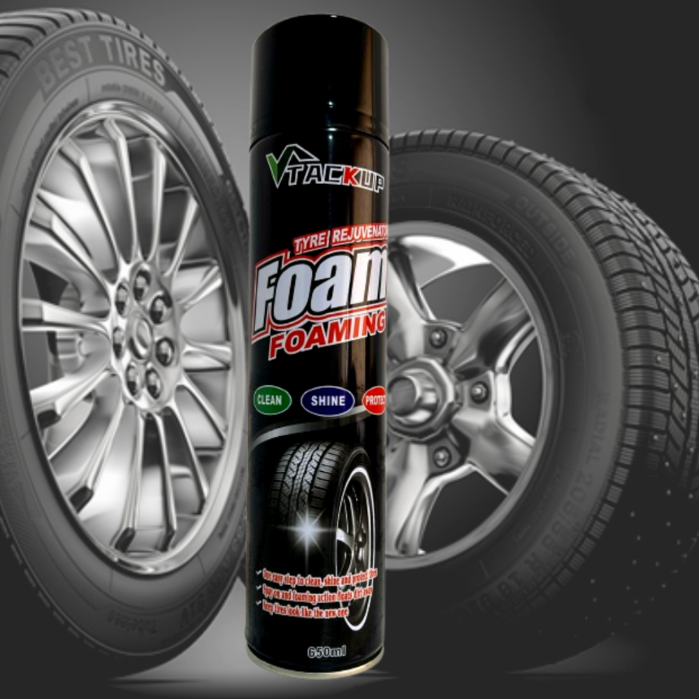 Cu TACKUP Tyre Rejuvenator Foam, anvelopele tale vor avea mereu un aspect impecabil, fiind protejate împotriva uzurii și factorilor externi!