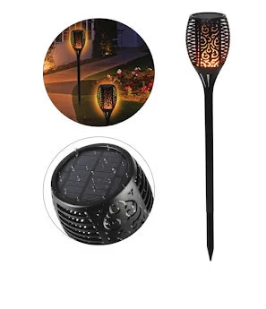 Lampă solara cu LED-uri de tip torta, cu baterie încorporată. Lumină caldă LED, imitând o flacără în mișcare (incendiul tortei dă impresia de mișcare, rafale de vânt).