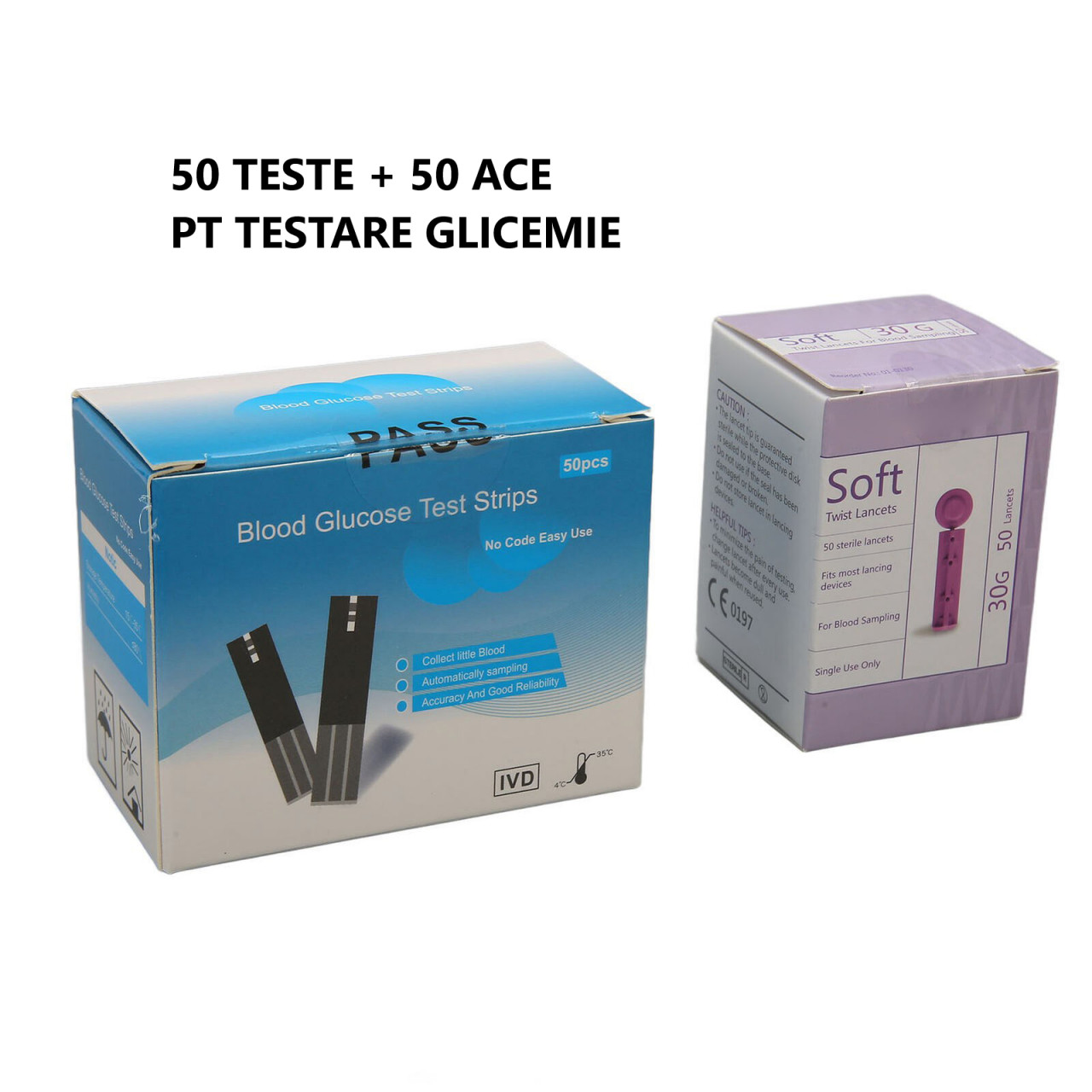 Set 50 Bandelete de Testare si 50 Ace Microlet Pentru Glucometru, Aparat masurat glicemia, 0250MLD